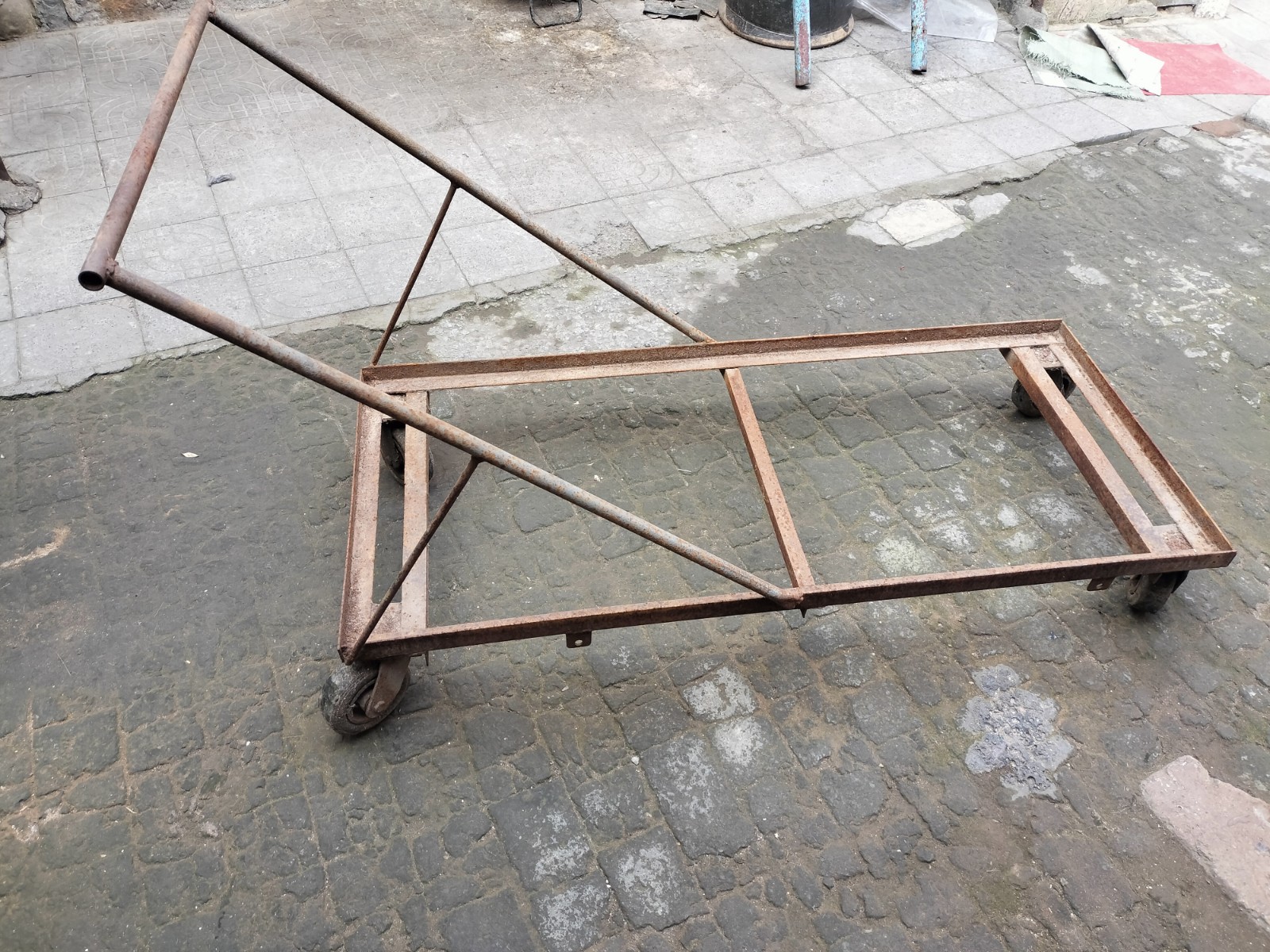 采用国标角铁焊接四个尼龙轮子,360度可旋转,非常的结实。有意者请尽快联系