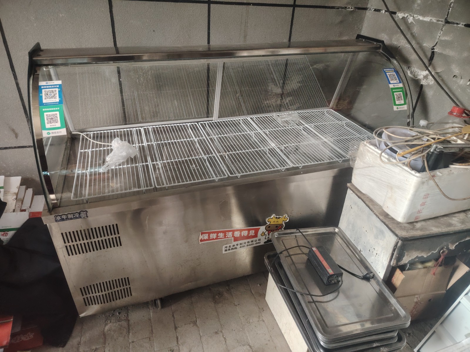 9.8成新去年刚买的2千多(有票)家里门市不干了便宜出售。上面冷藏下面是冰柜