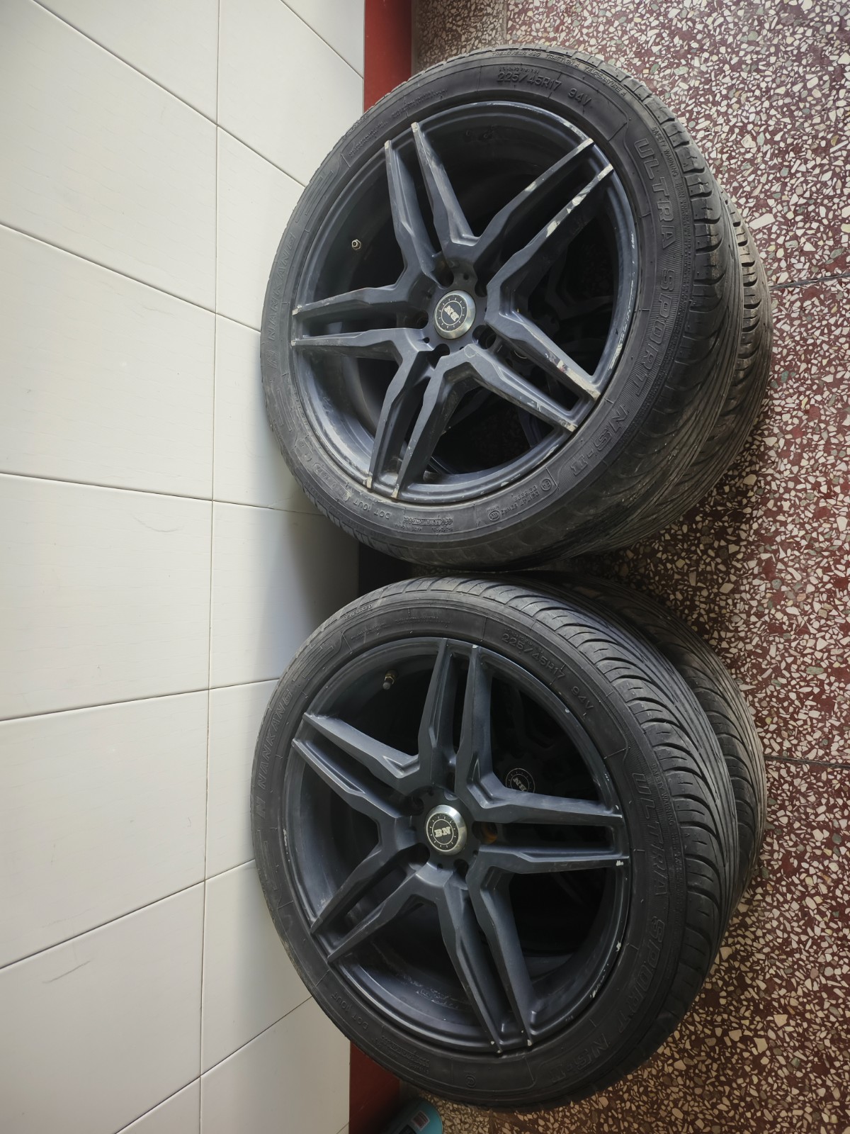 出售四套轮胎轮毂!成色都挺好!型号225/45R17 马自达车改装 拆下来的。车子卖了留着没用。转给有需要的朋友。☎:18031014012